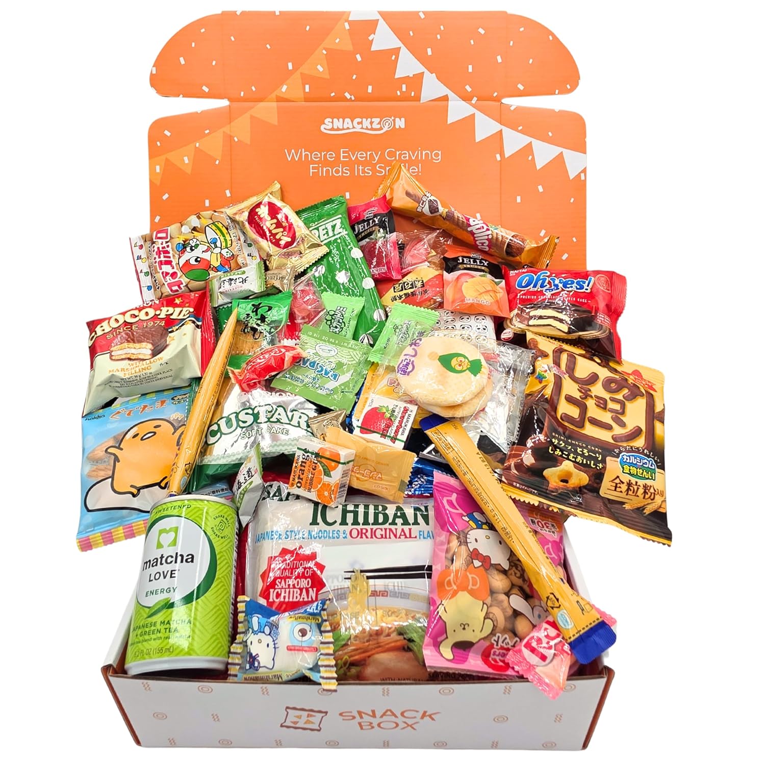 - Discover 44 Pieces of Authentic Asian Flavor: Unwrap a delightful collection of 44 individually selected, full-sized Japanese and Korean snacks and candies, ensuring a diverse and exciting taste experience in every Snackzon box.